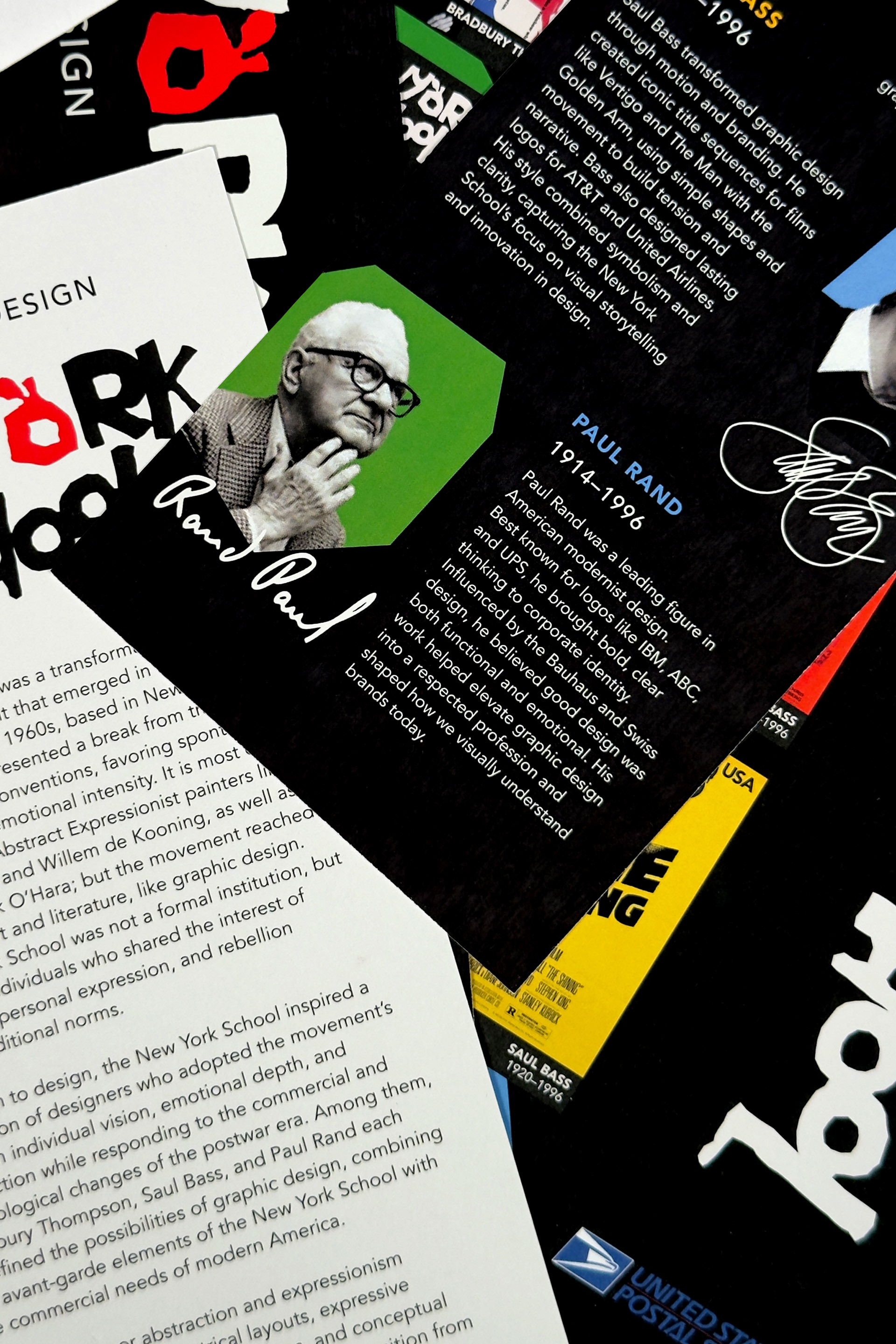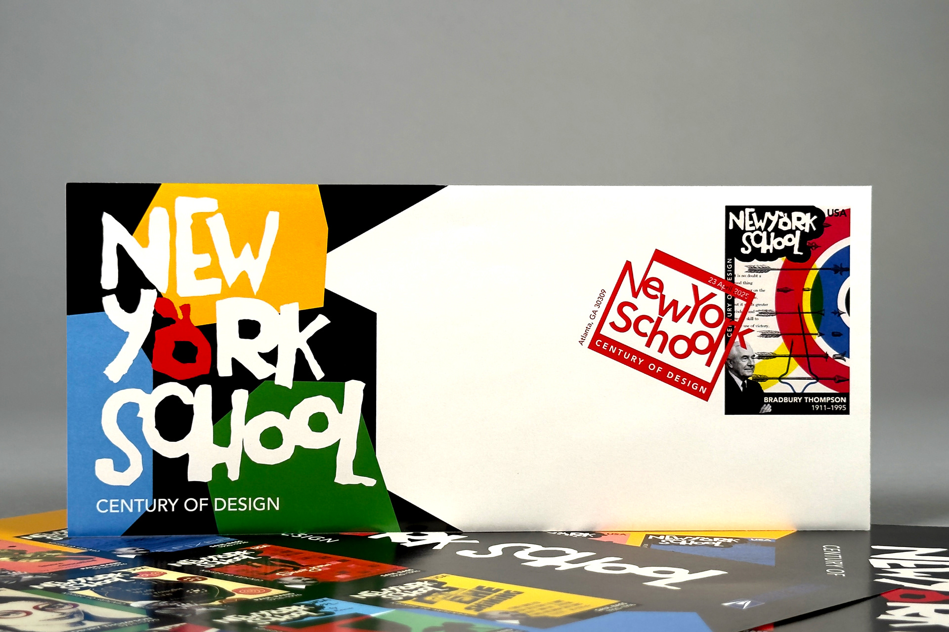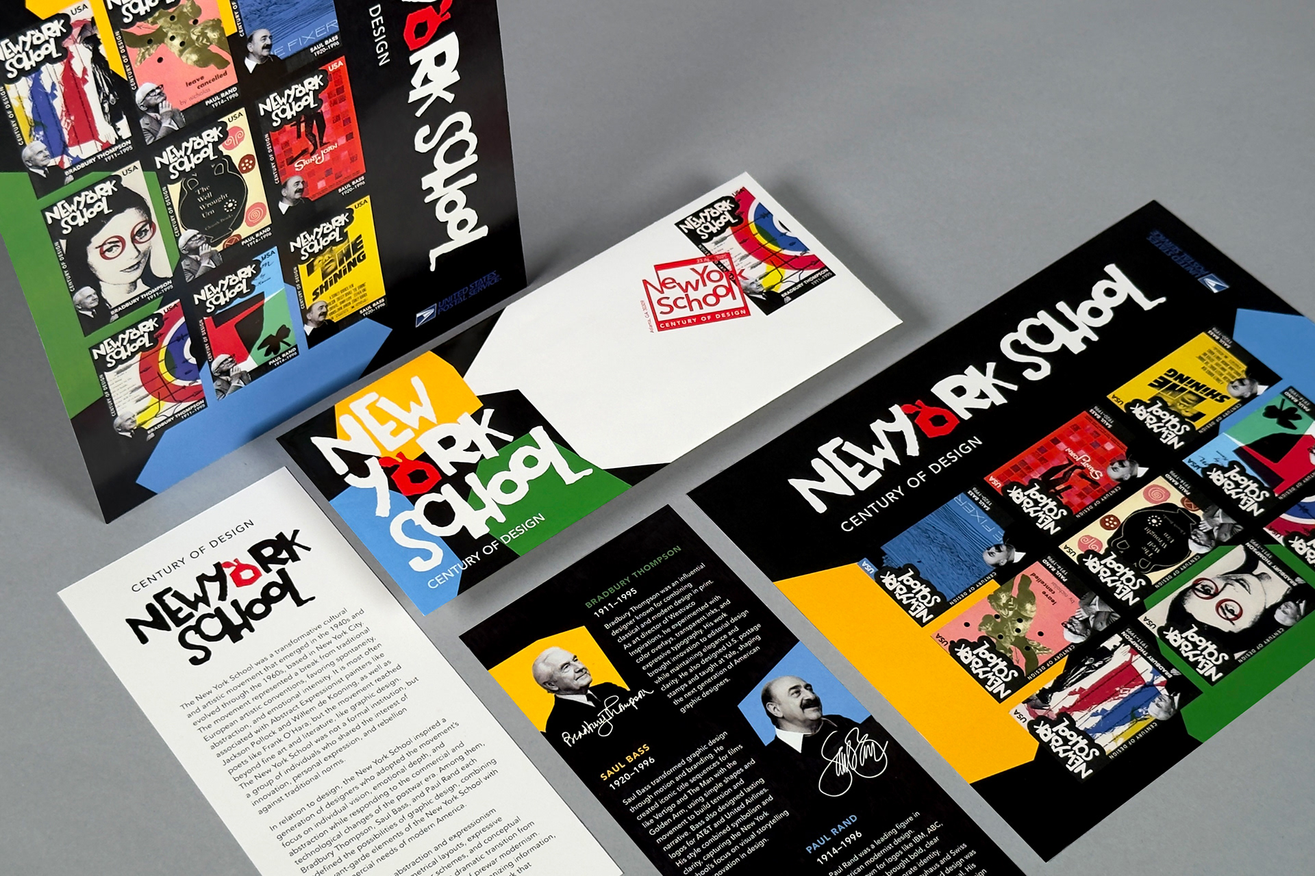 This project celebrates the impact of the New York School through a commemorative USPS stamp series and supporting print collateral. Each stamp pays tribute to the legacy of key designers—Saul Bass, Paul Rand, and Bradbury Thompson—by reimagining their most iconic works within a unified visual system. I designed the stamp layouts, promotional booklet, envelope, and first-day cover, drawing inspiration from mid-century modern design principles while incorporating bold typography and dynamic color blocking. The collection captures the spirit of the movement and its influence on contemporary graphic design.