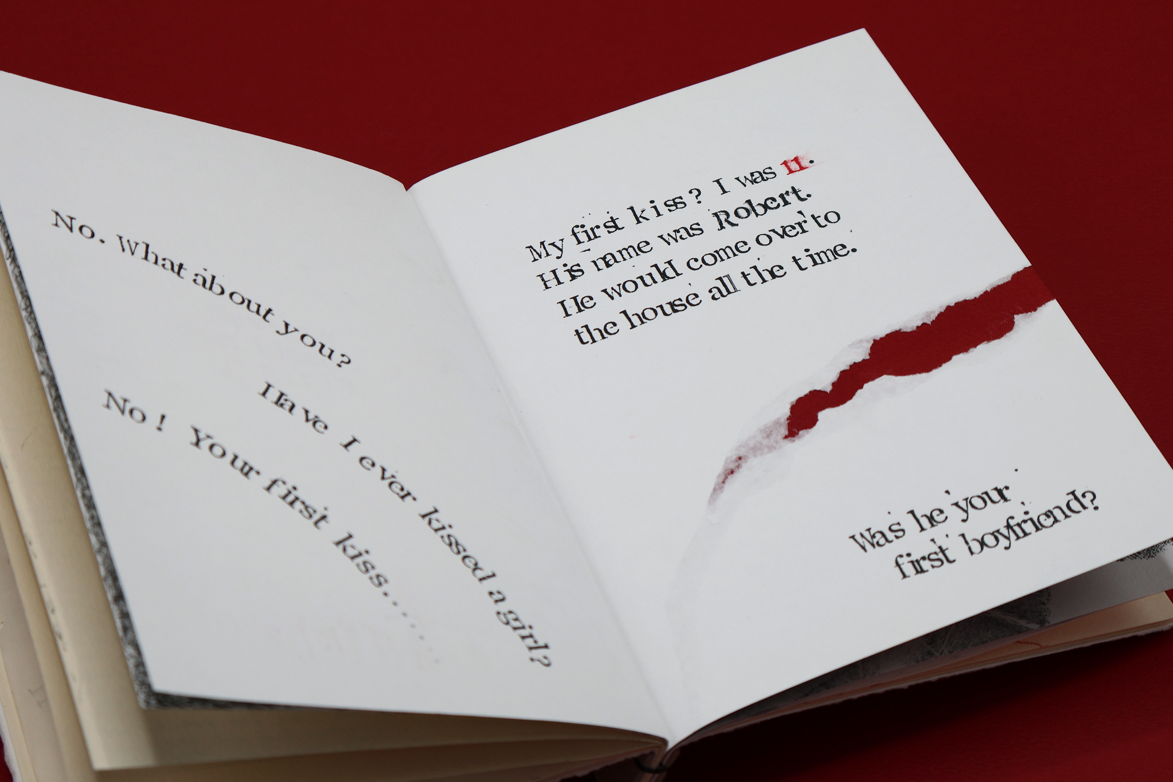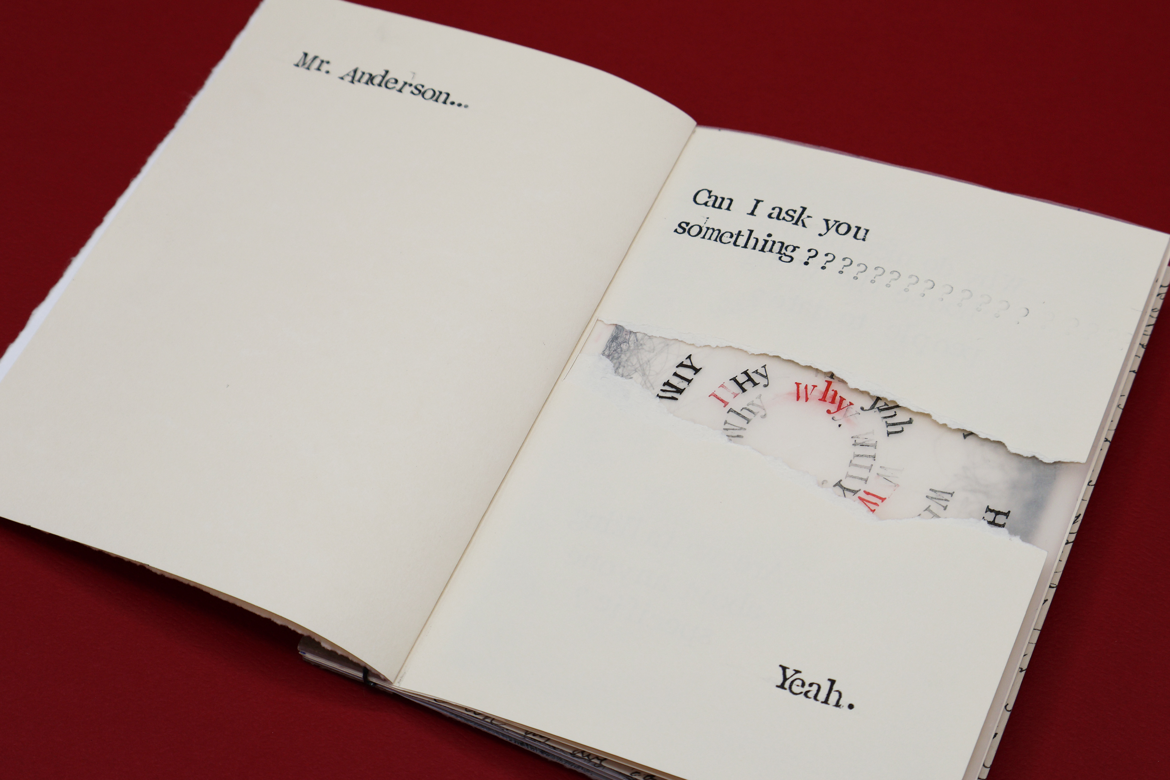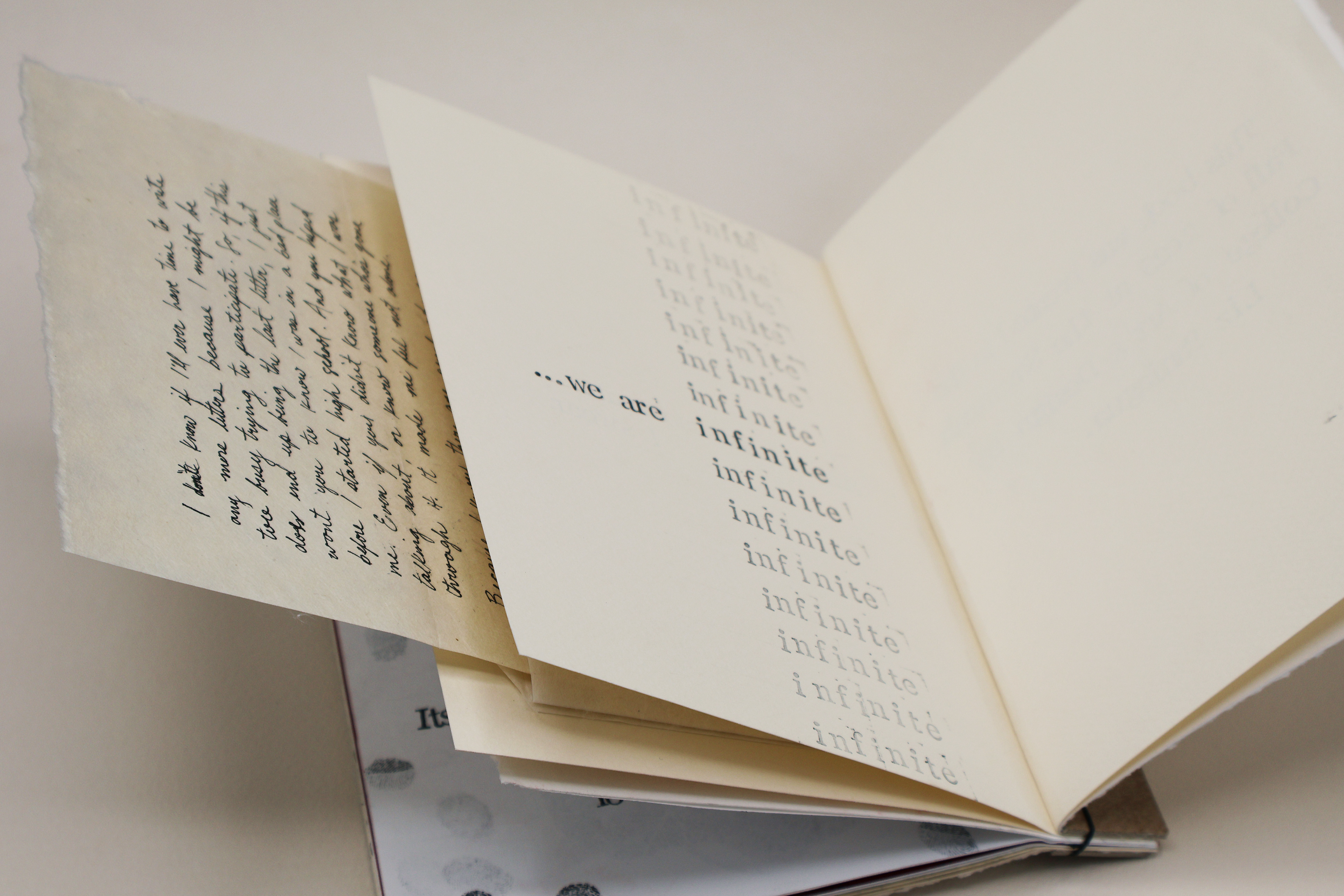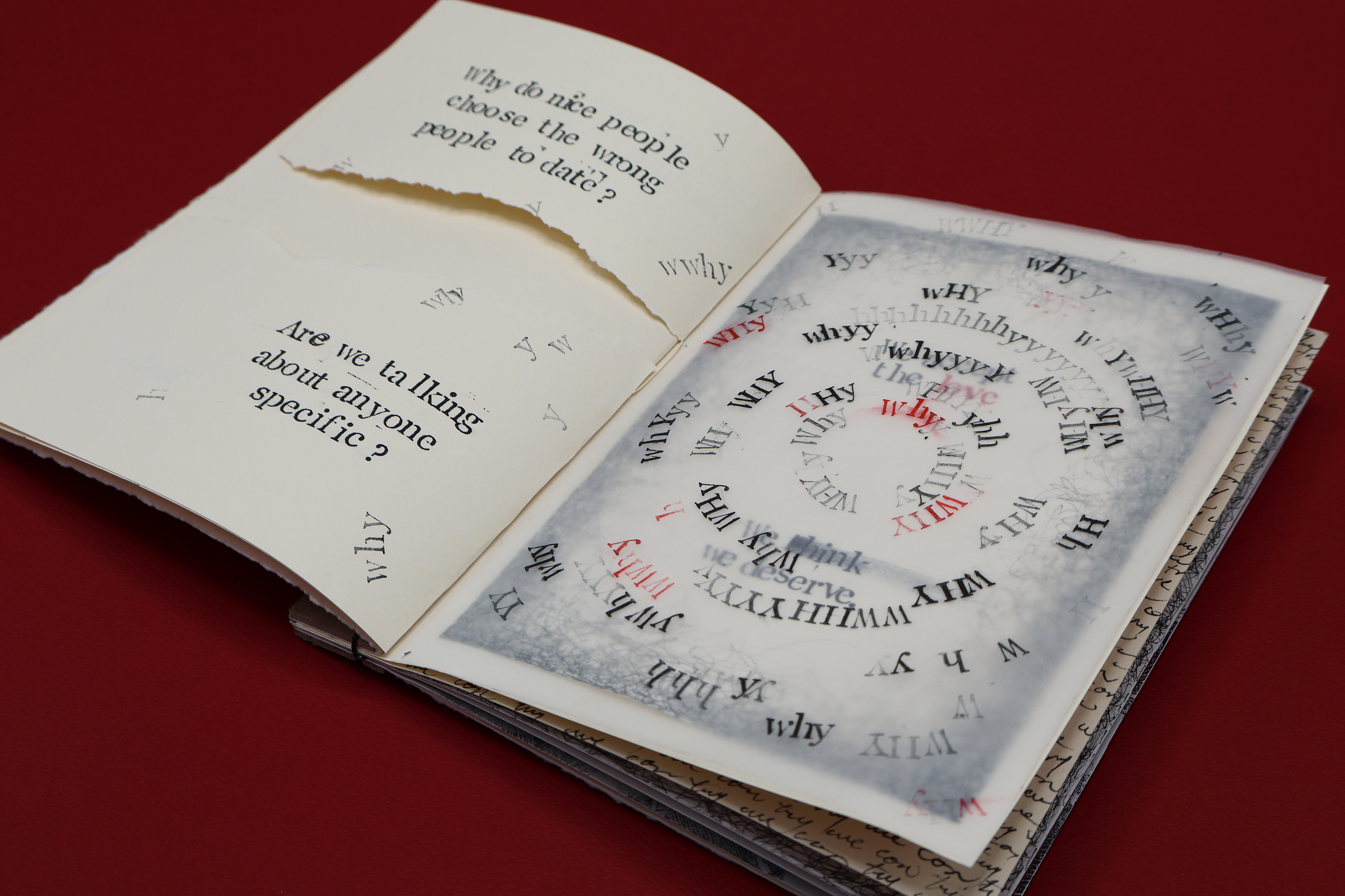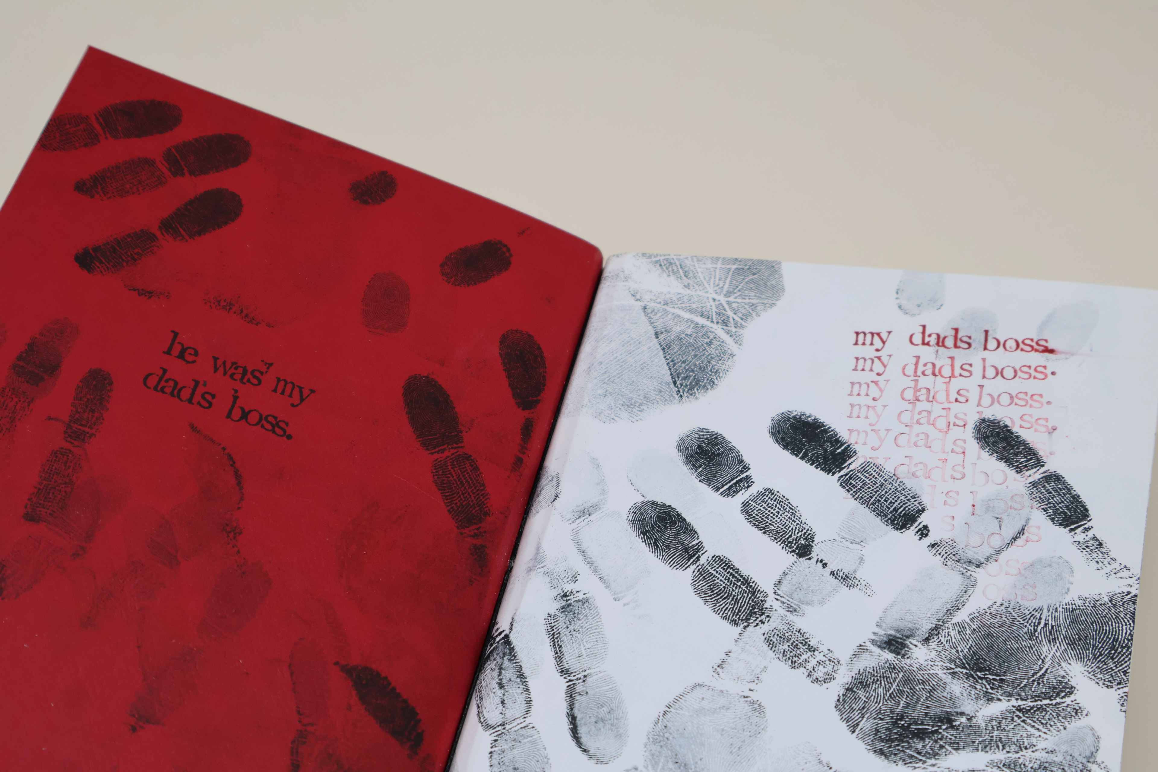 The book is completely handmade. The text was stamped into the paper, the final letter is handwritten and was put together using Japanese binding. The idea behind it being completely made by hand was to lean into the rawness of the story and the way I decided to approach it. This book wasn't meant to be printed and put together with metal staples, but to feel like a human story.